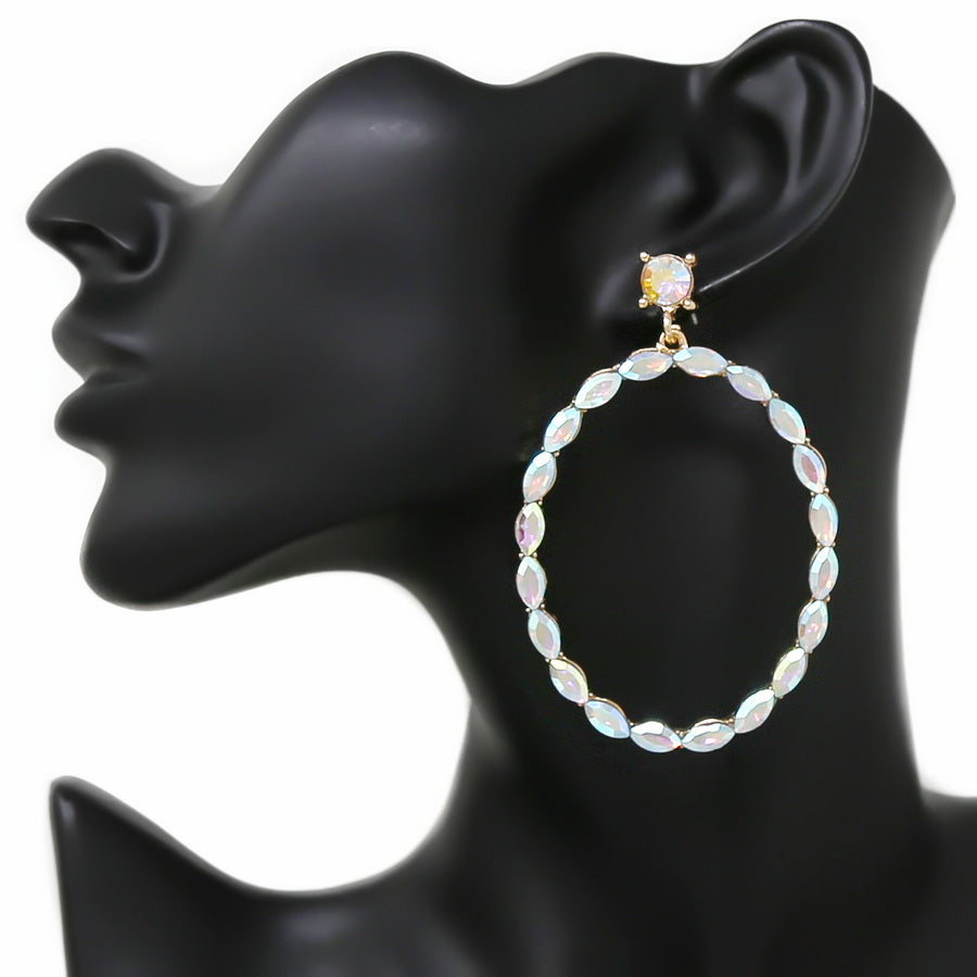 Marquise Glass Stone Embellished Hoop Drop Earrings