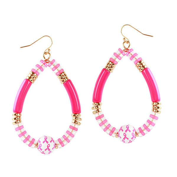 Breast Cancer Pink Ribbon Theme Dangle Earrings
