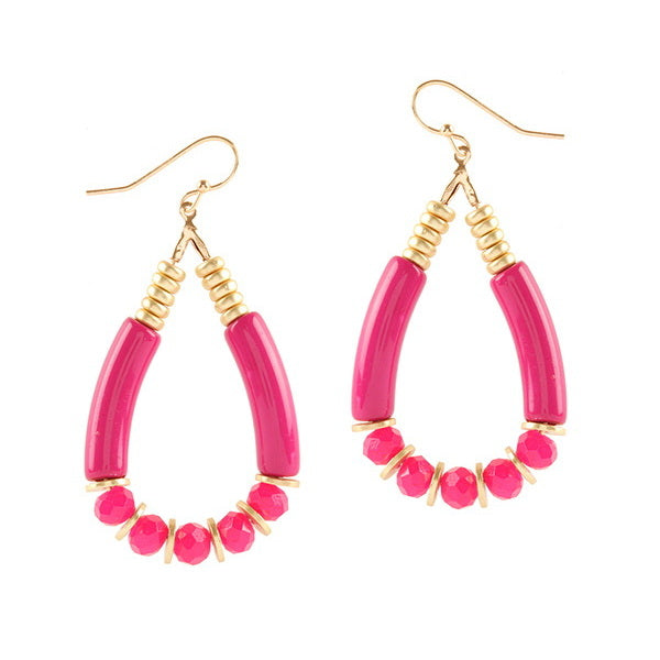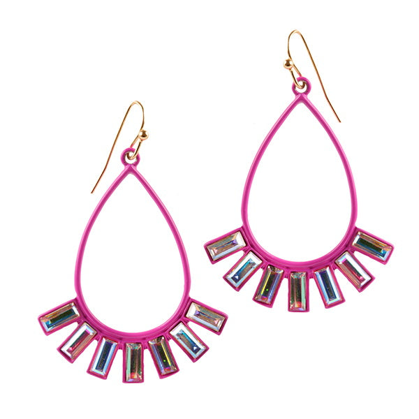 Barbie Theme Pave Stone Glass Bead Teardrop Earrings