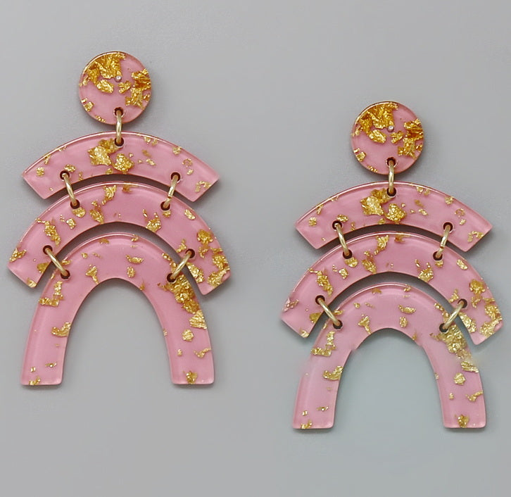 Double Rhombus CZ Gold Dipped Drop Earrings