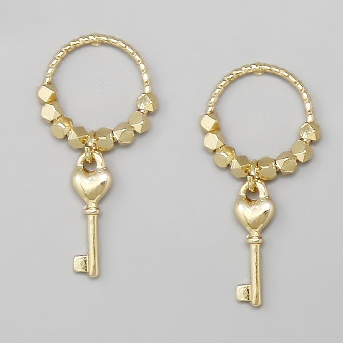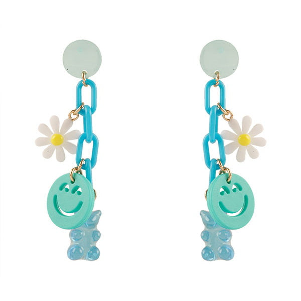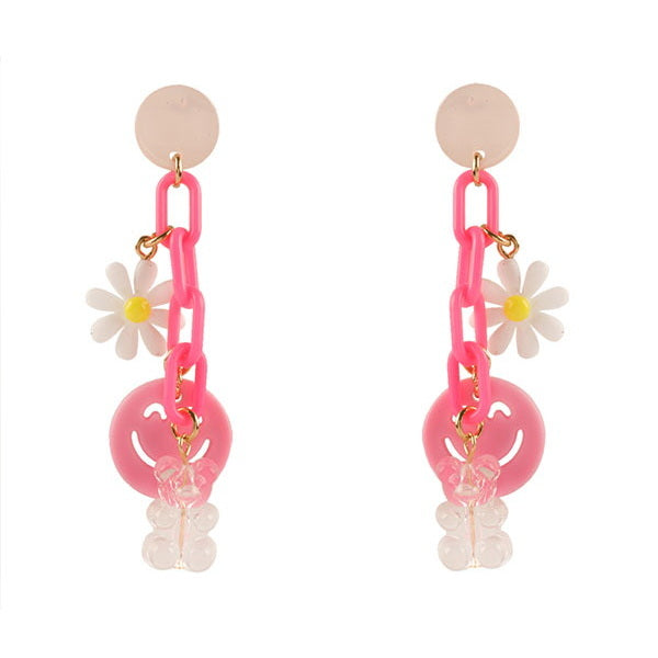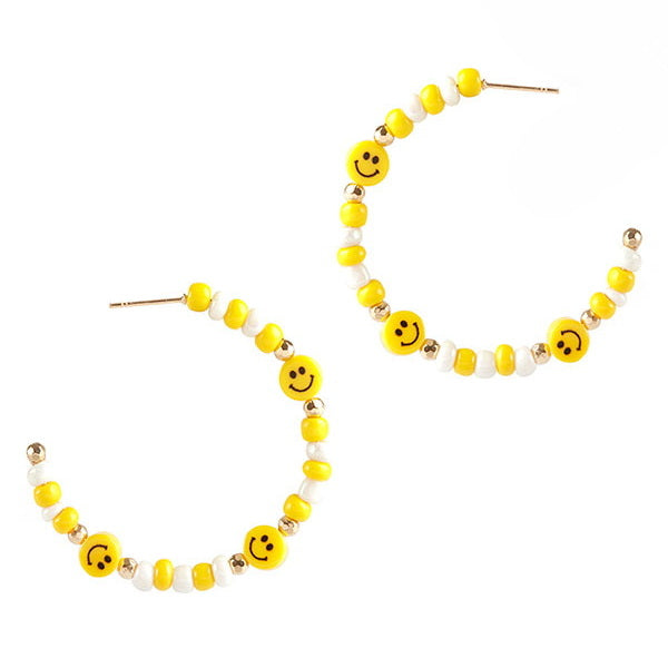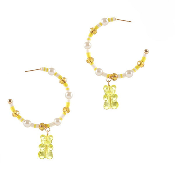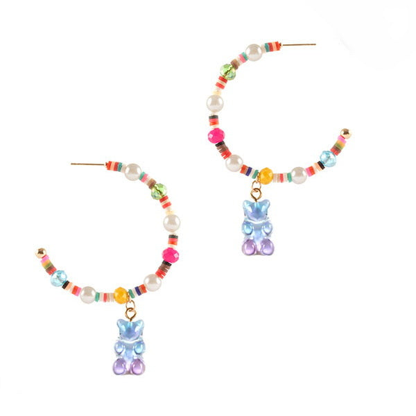 Pearl Gummy Bear Charm Seed Bead Hoop Earrings