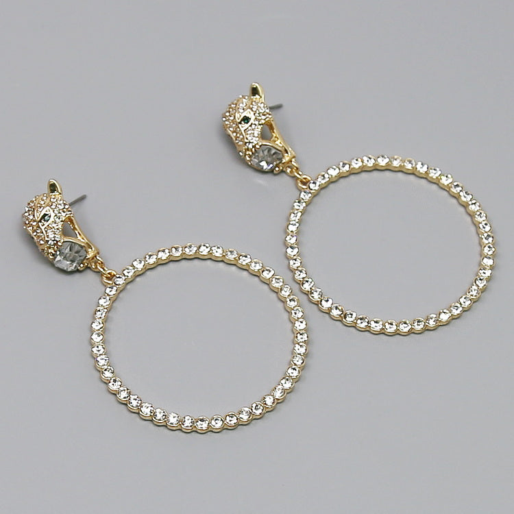 Rhinestone Pave Leopard Hoop Drop Earrings