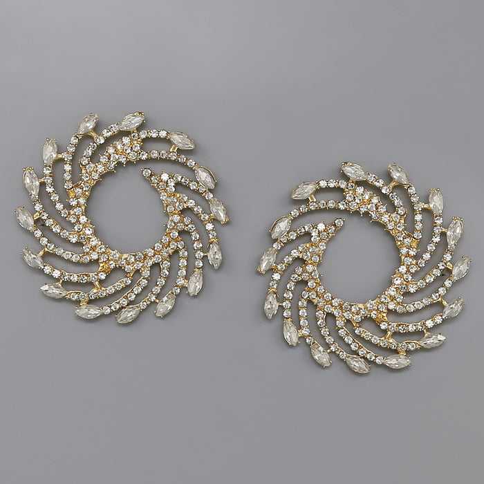 Clover Shape CZ Pave Gold Dipped Stud Earrings