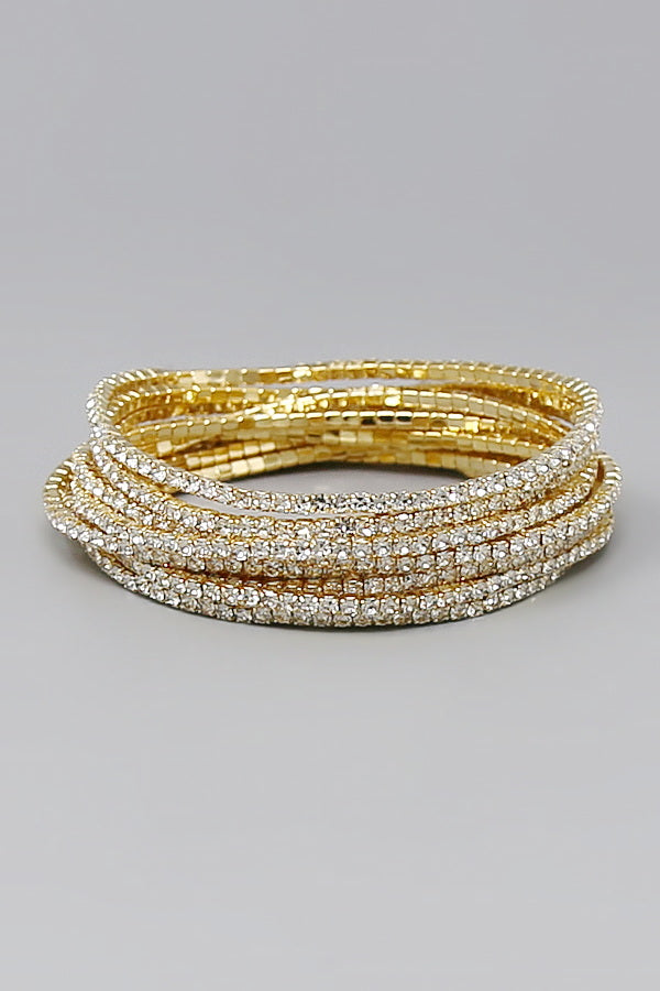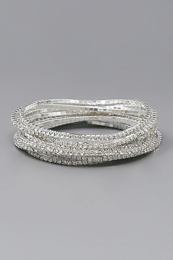 12 Line Rhinestone Pave Stretch Bracelet Set