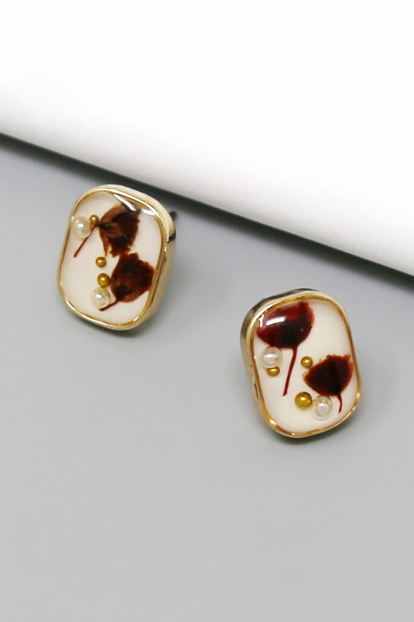 Pressed Flower And Pearl Acrylic Octagon Hoop Earrings