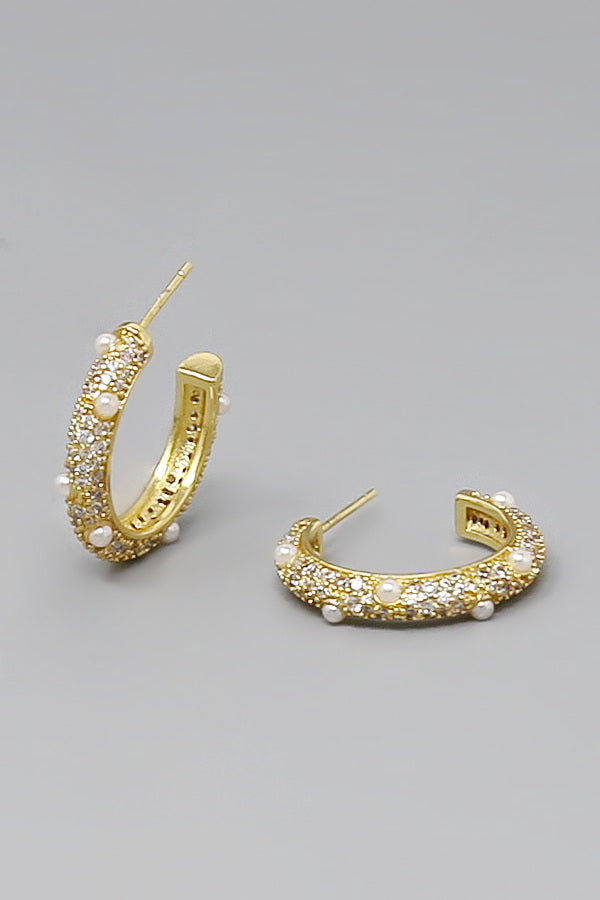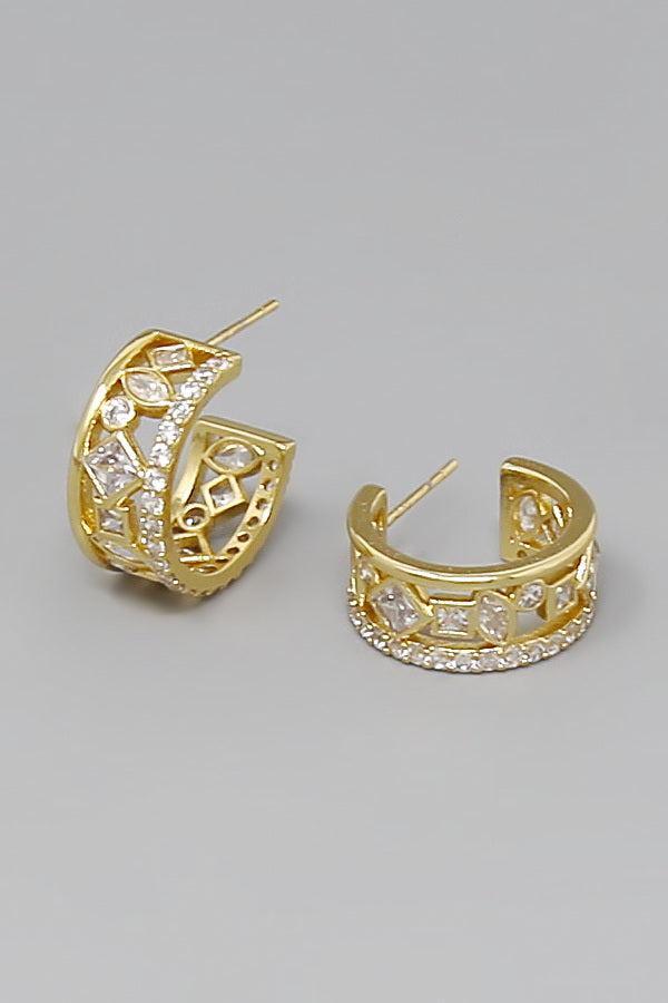 CZ Pave Charm Gold Dipped Hoop Earrings