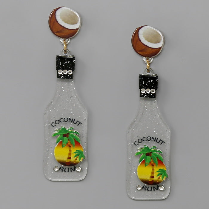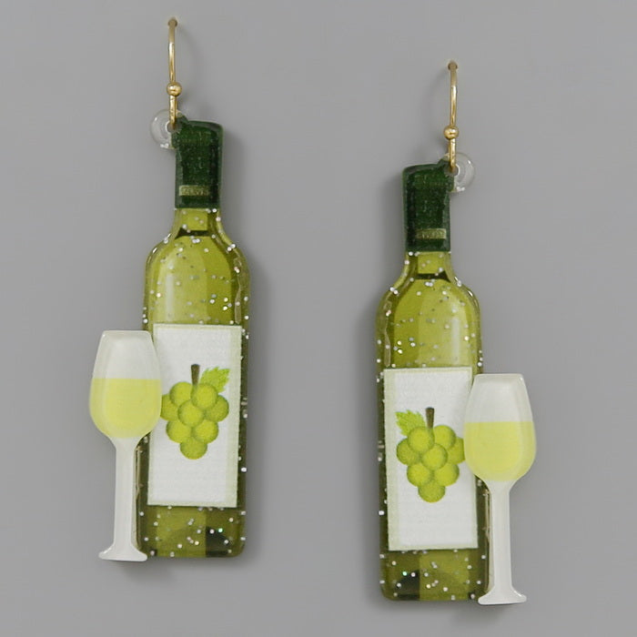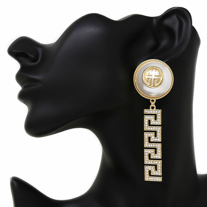 Pearl Button With Greek Pattern Charm Drop Earrings