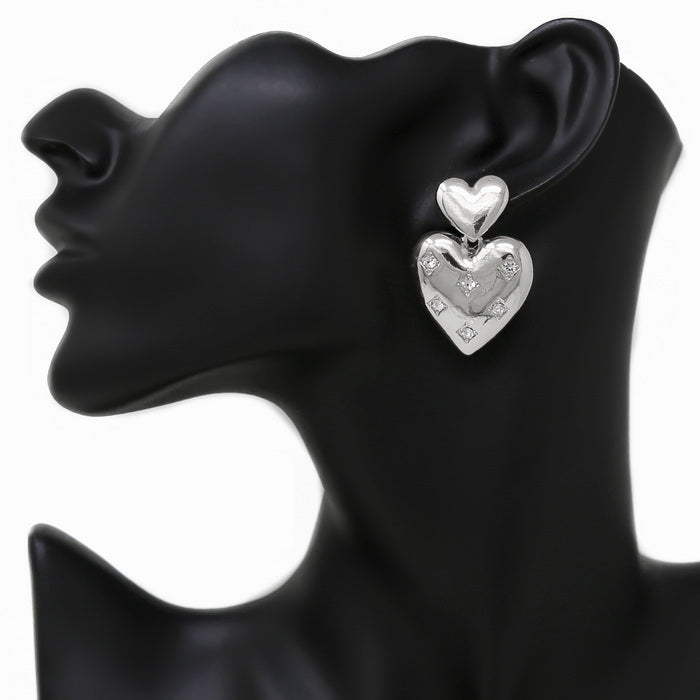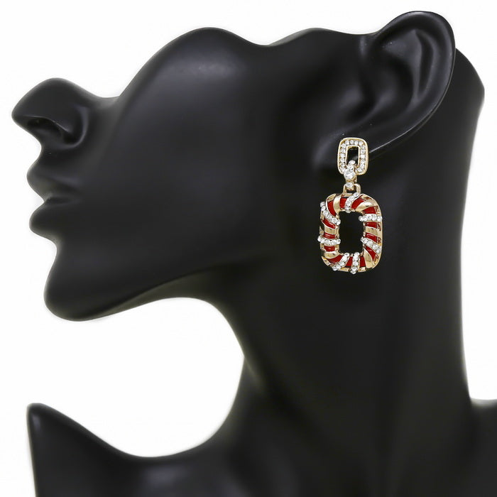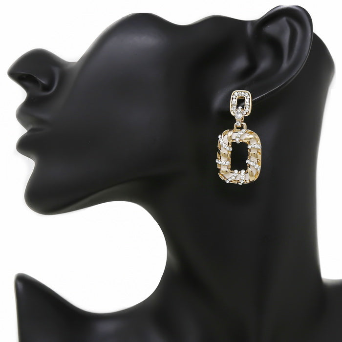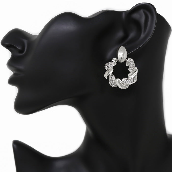 Glass Stone Pave Twisted Metal Hoop Drop Earrings