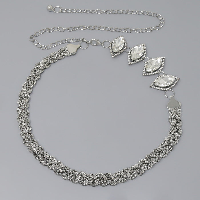 Glass Stone Pave Trapeze Shape Statement Earrings