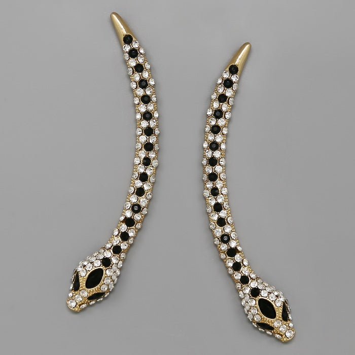 Greek Pattern Glass Stone Pave Triangle Hoop Earrings