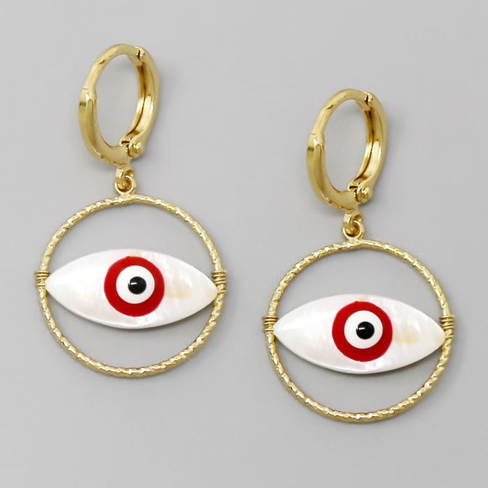 Glass Stone Top Engraved Evil Eye Drop Earrings