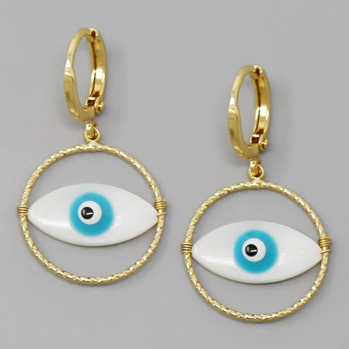 Evil Eye Charm Glass Beaded Hoop Drop Earrings