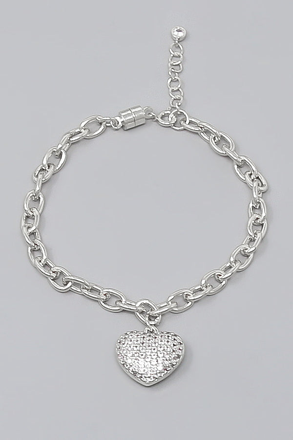 Pave Heart Charm Gold Dipped Magnetic Bracelet