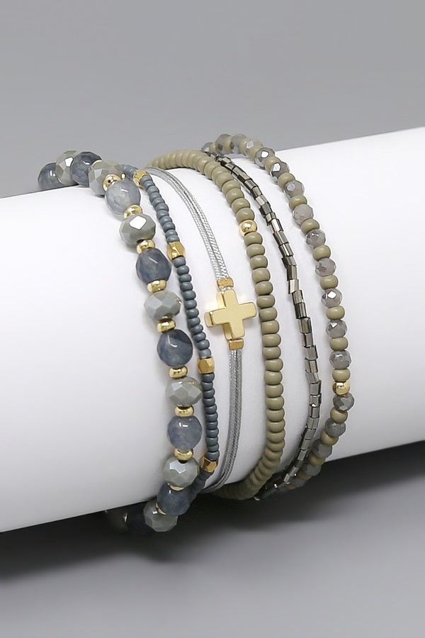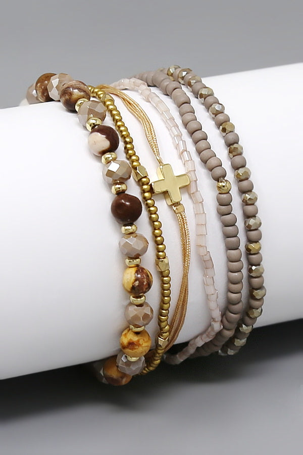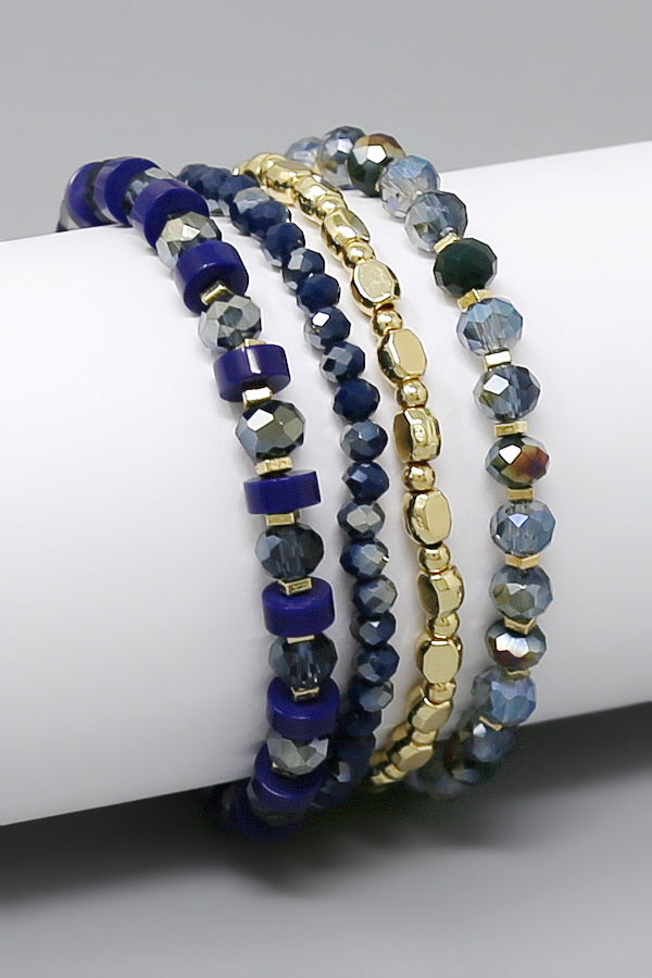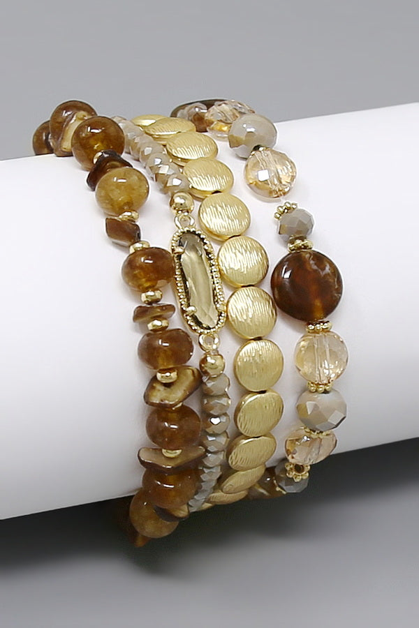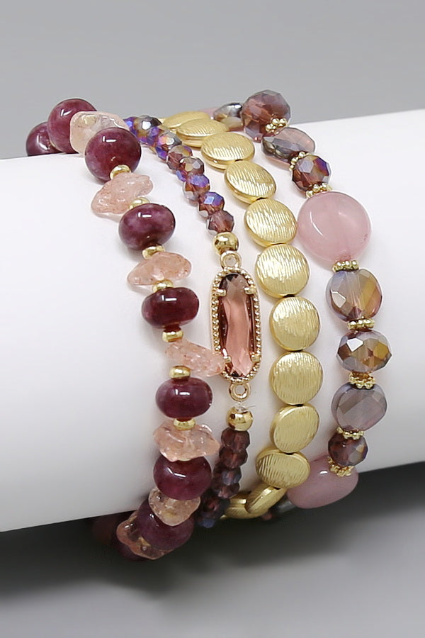 Semi Precious Stone & Glass Beaded Stretch Bracelet Set