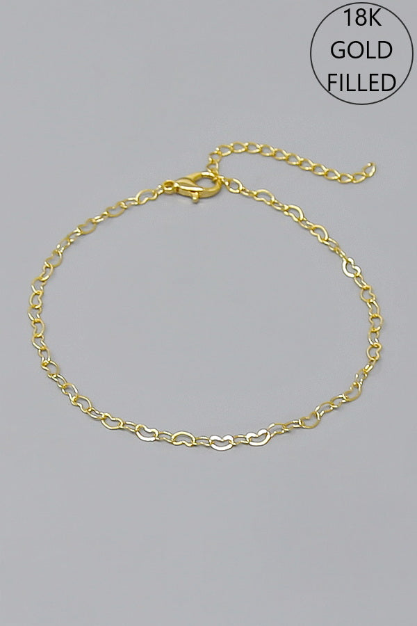 18K Gold Filled Heart Link Chain Bracelet