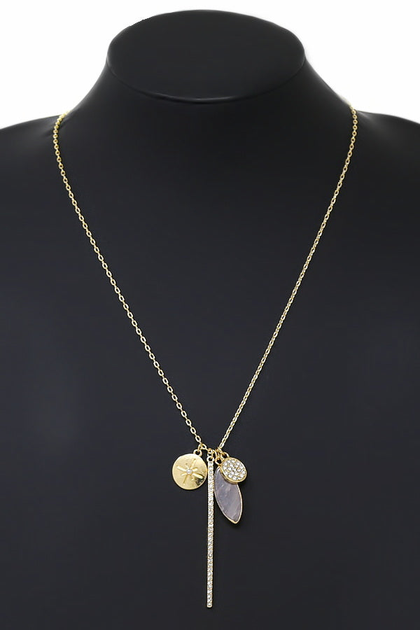 Toggle Pendant Semi Precious Stone Beaded Short Necklace