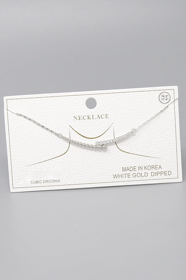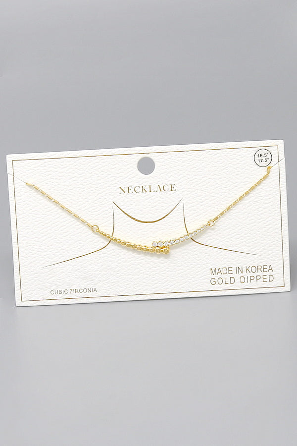 Double Curved CZ Pave Bar Pendant Gold Dipped Chain Necklace