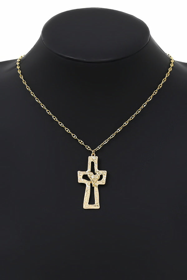 Hammered Cross With Heart Chain Necklace