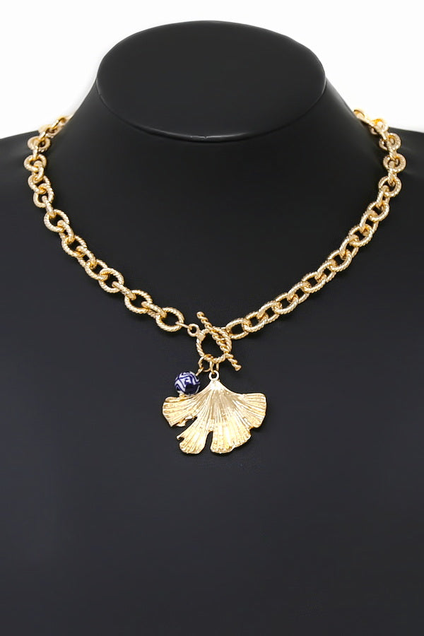 Leaf Ceramic Bead Pendant Toggle Necklace