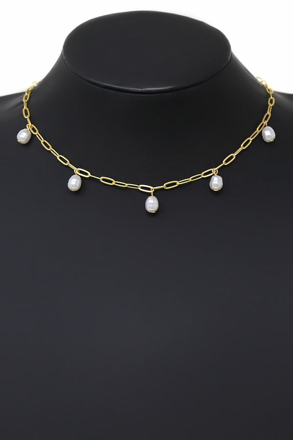 Pearl Dangle Pendant Paperclip Chain Necklace