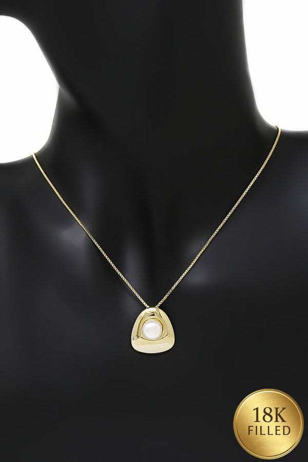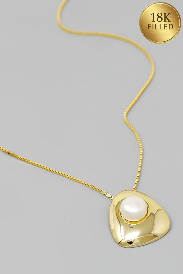 Geometric Pearl Pendant 18K Gold Filled Necklace
