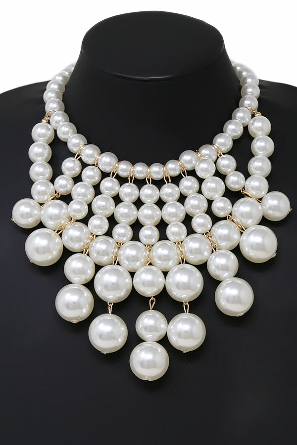 Pearl Beaded Chunky Bib Short Necklace