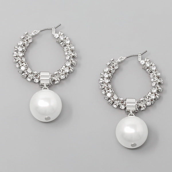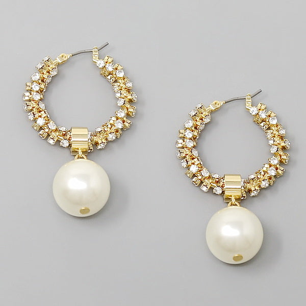 Pearl Charm Rhinestone Wrapped Hoop Earrings
