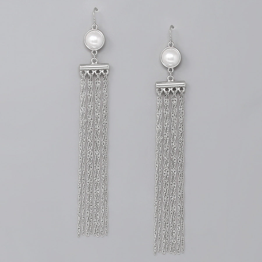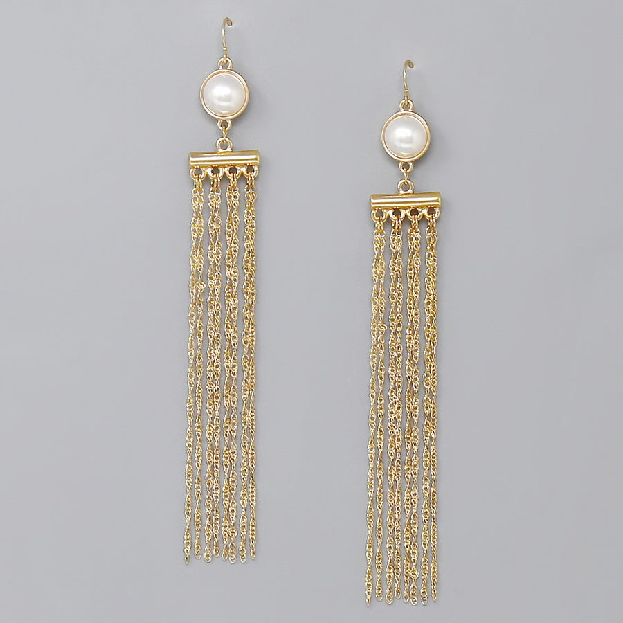 Pearl Detail Chain Fringe Long Earrings