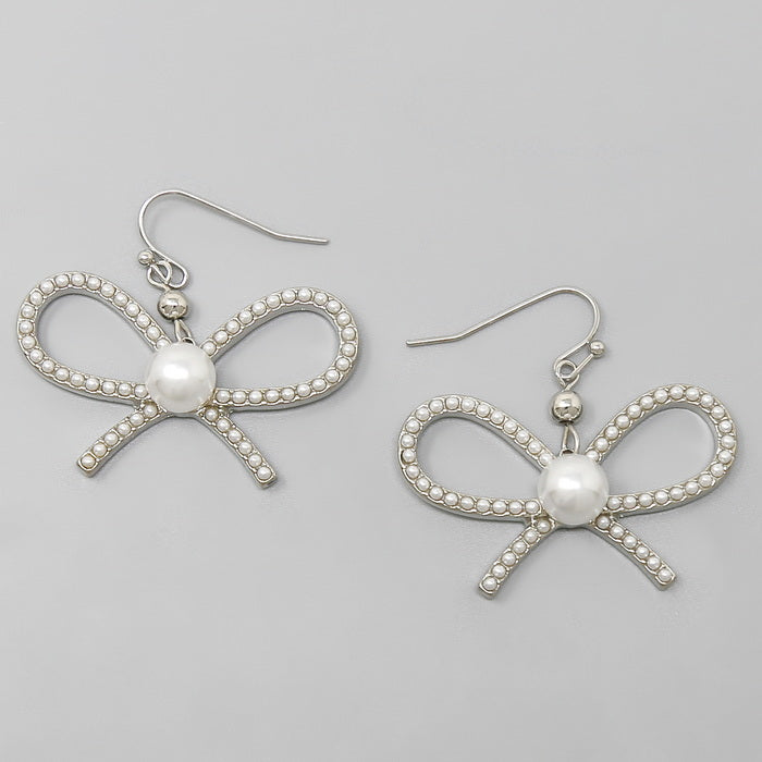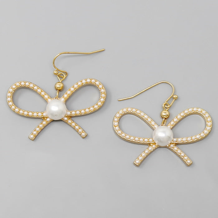 CZ Pave Knot & Pearl Mini Dangle Earrings