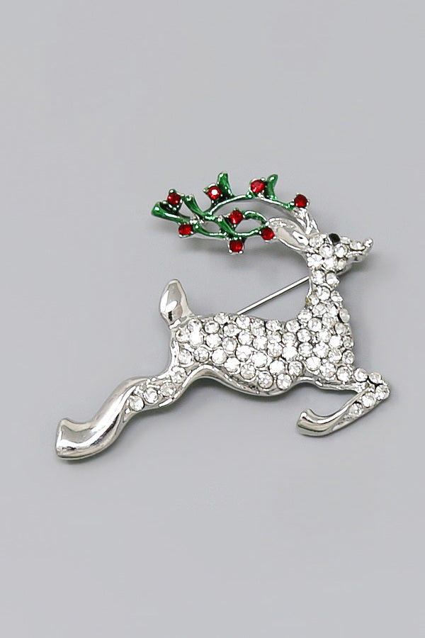 Reindeer Glass Stone Pave Brooch
