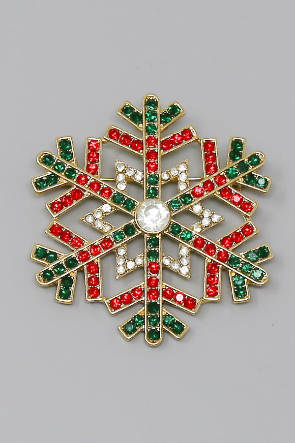 Snowflake Glass Stone Pave Brooch