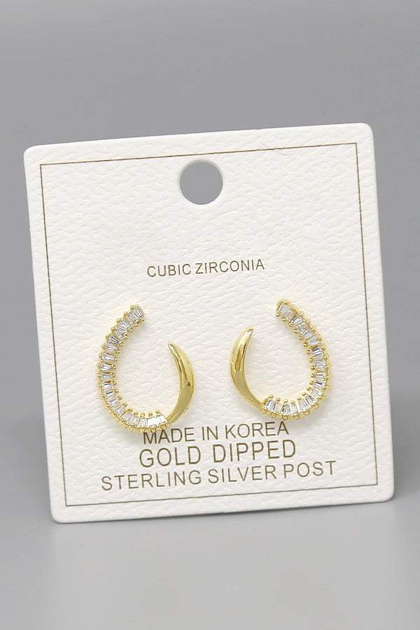 CZ Pave Curve Gold Dipped Earrings