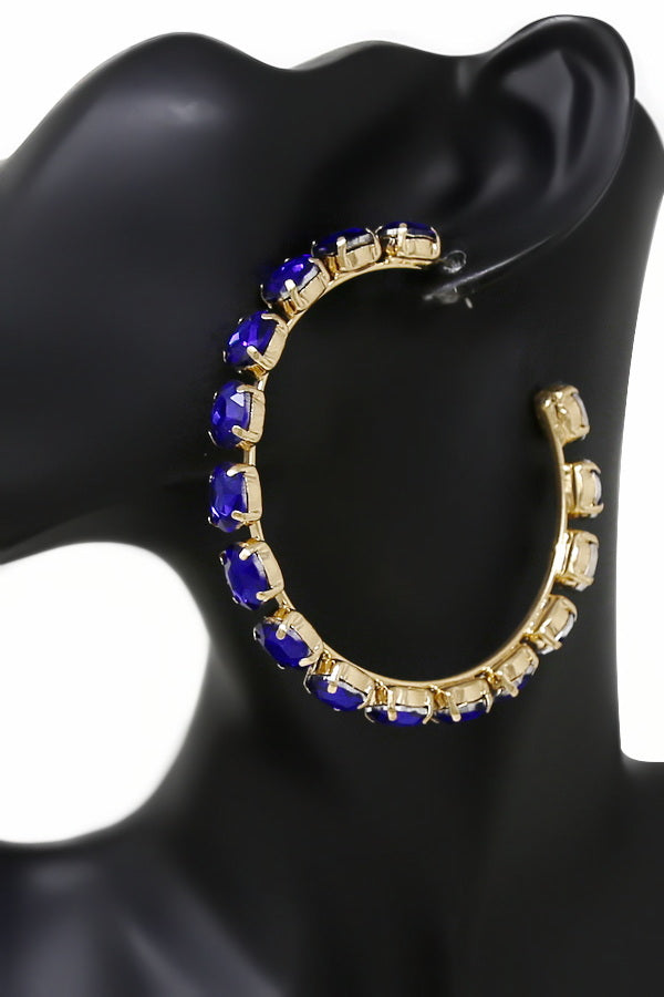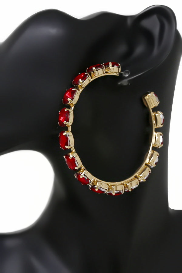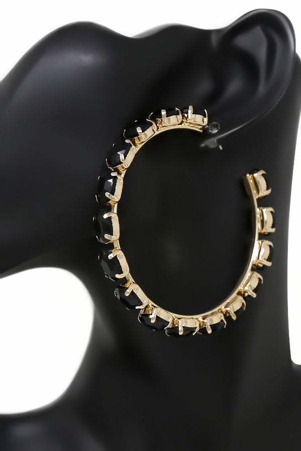 Glass Stone Embellished Hoop Statement Earrings