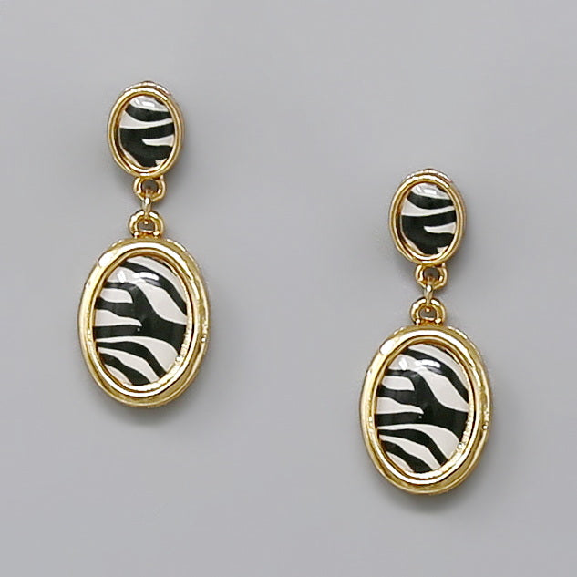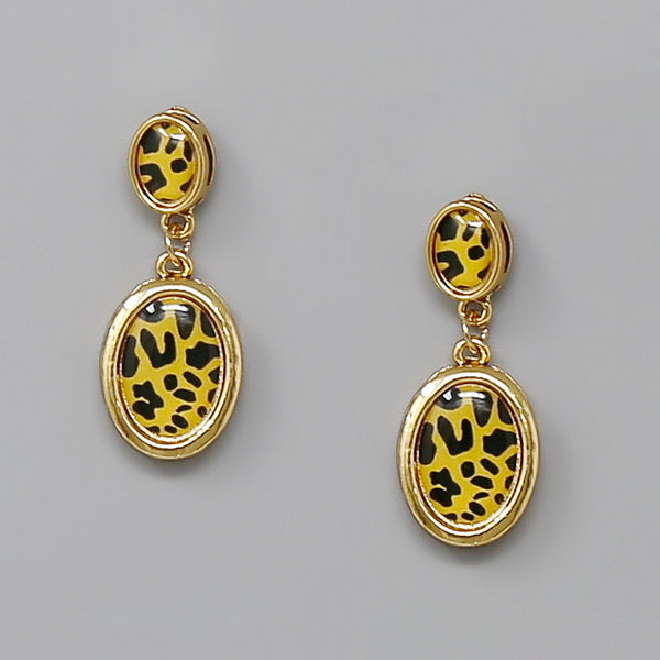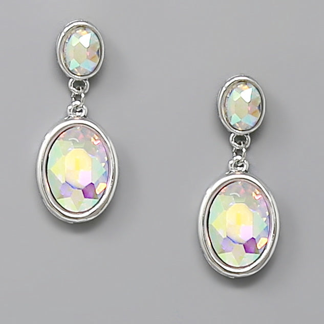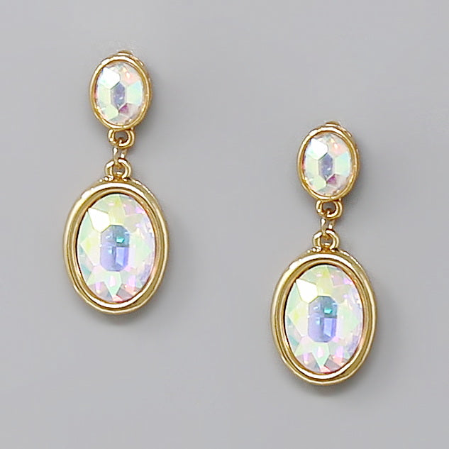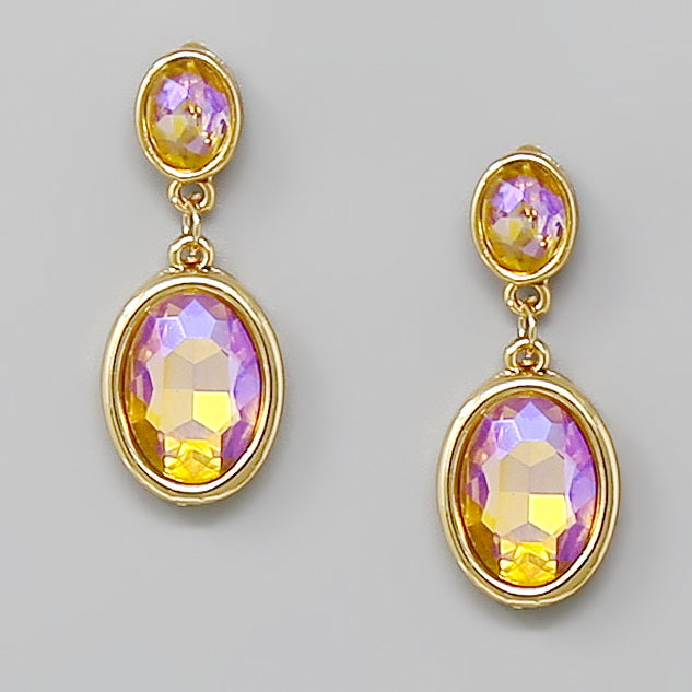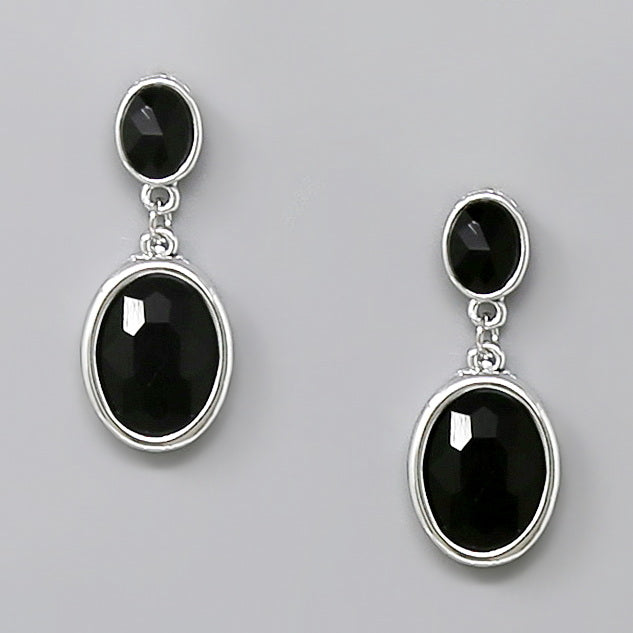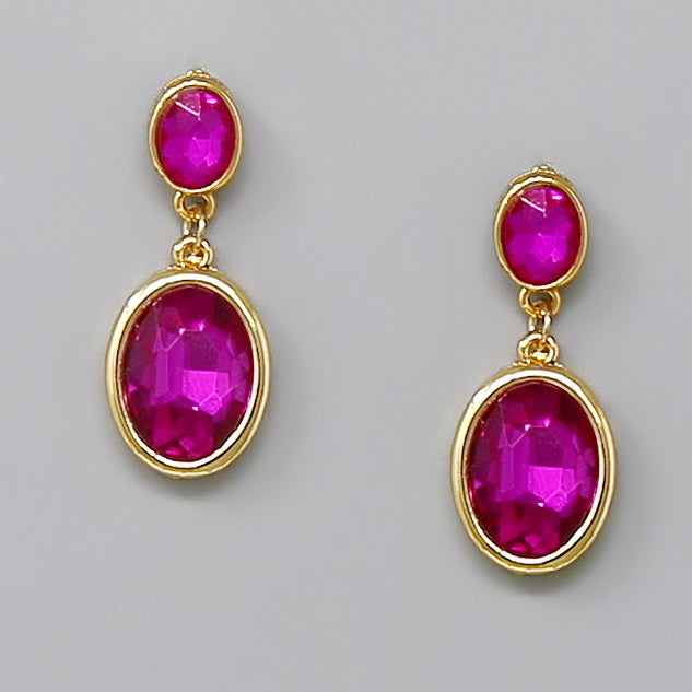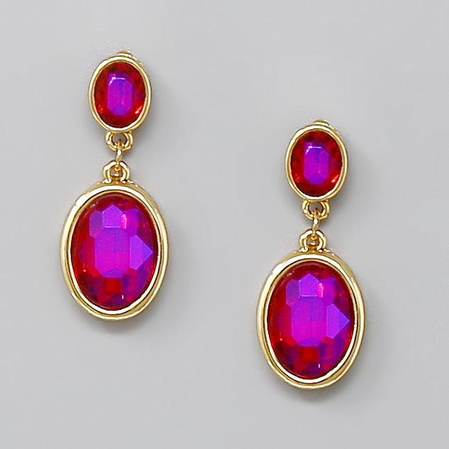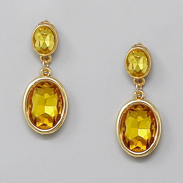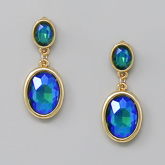 Oval Glass Stone Drop Earrings