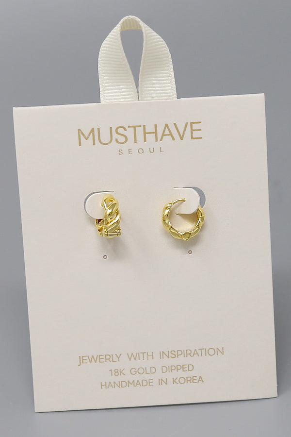 Textured Metal Gold Dipped Mini Hoop Earrings