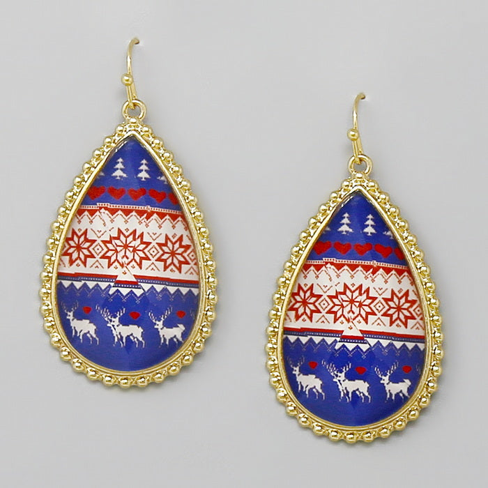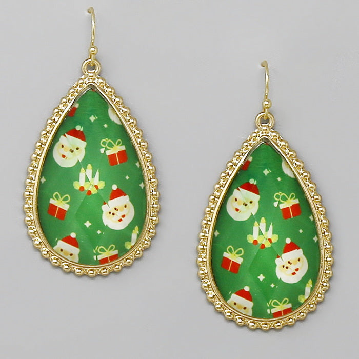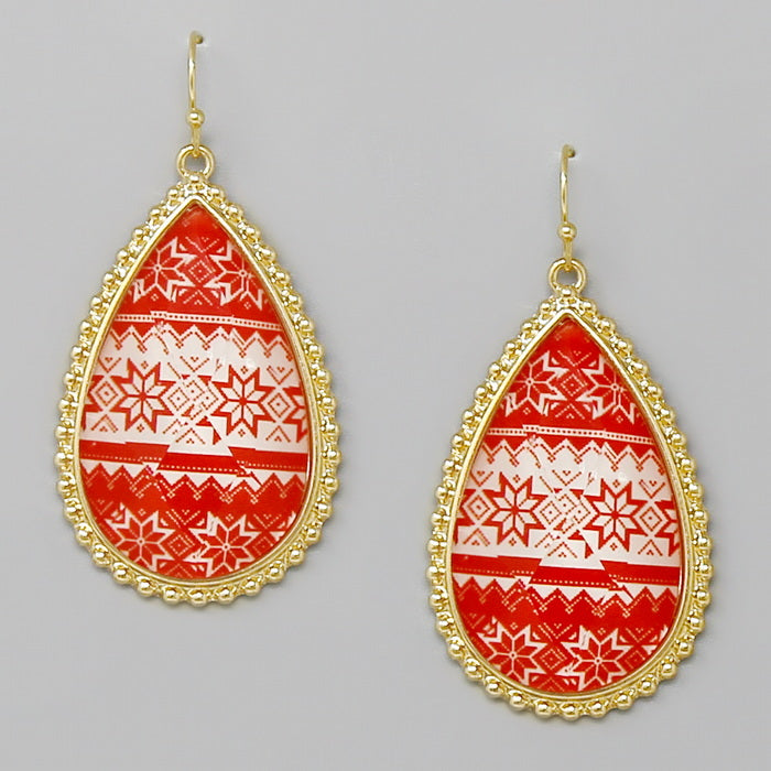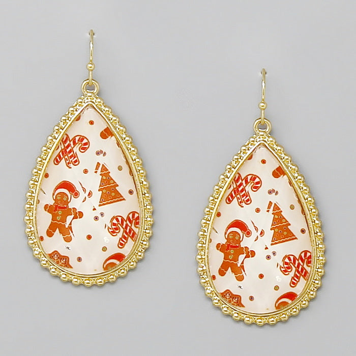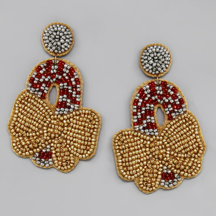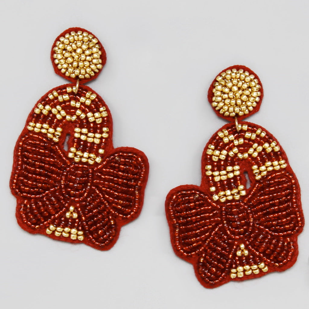 Christmas Candy Cane With Bow Seed Beaded Drop Earrings