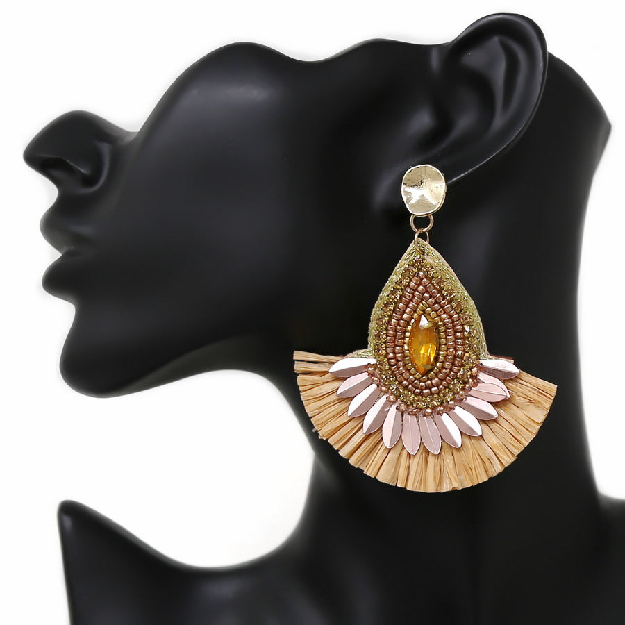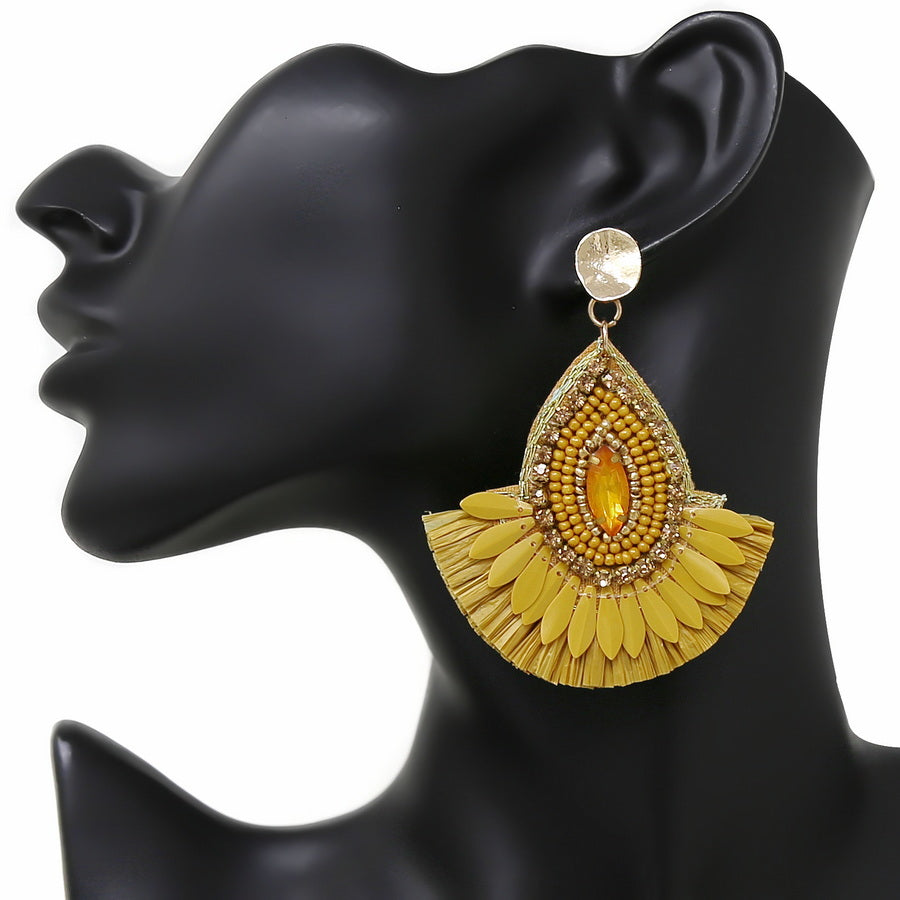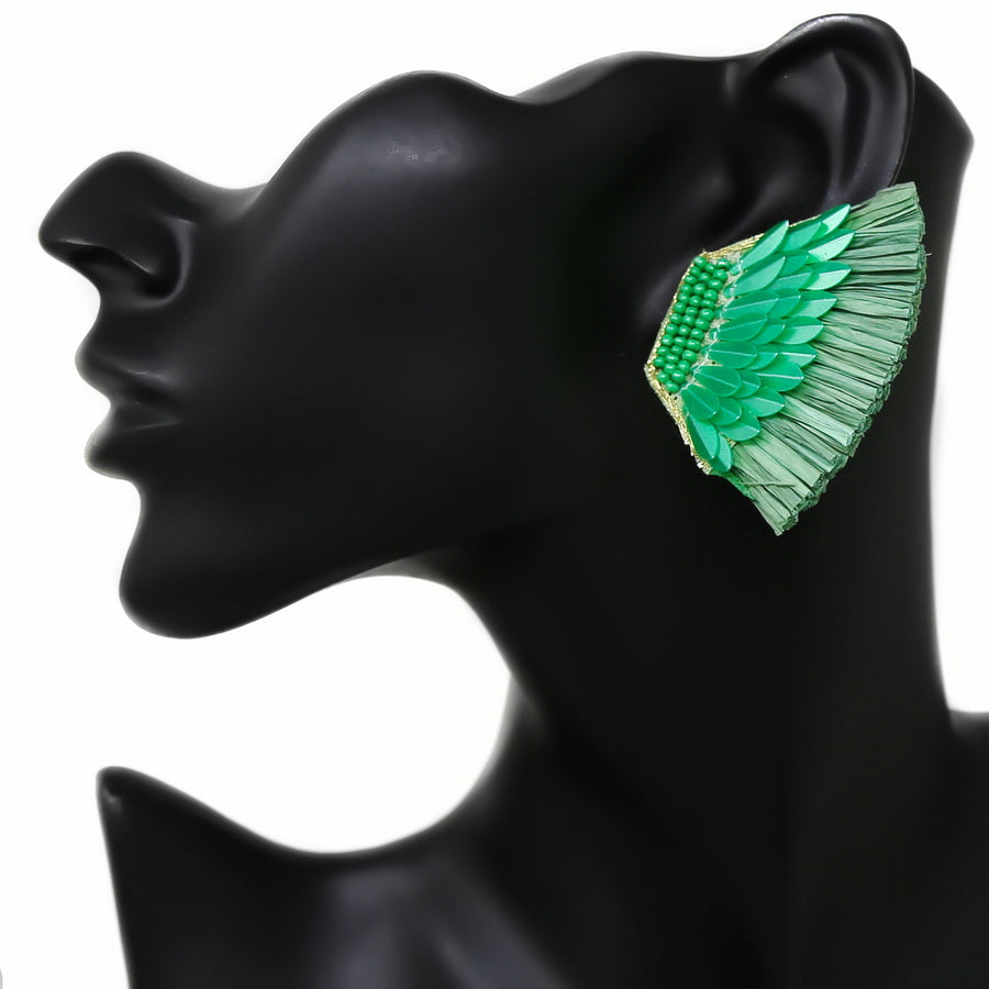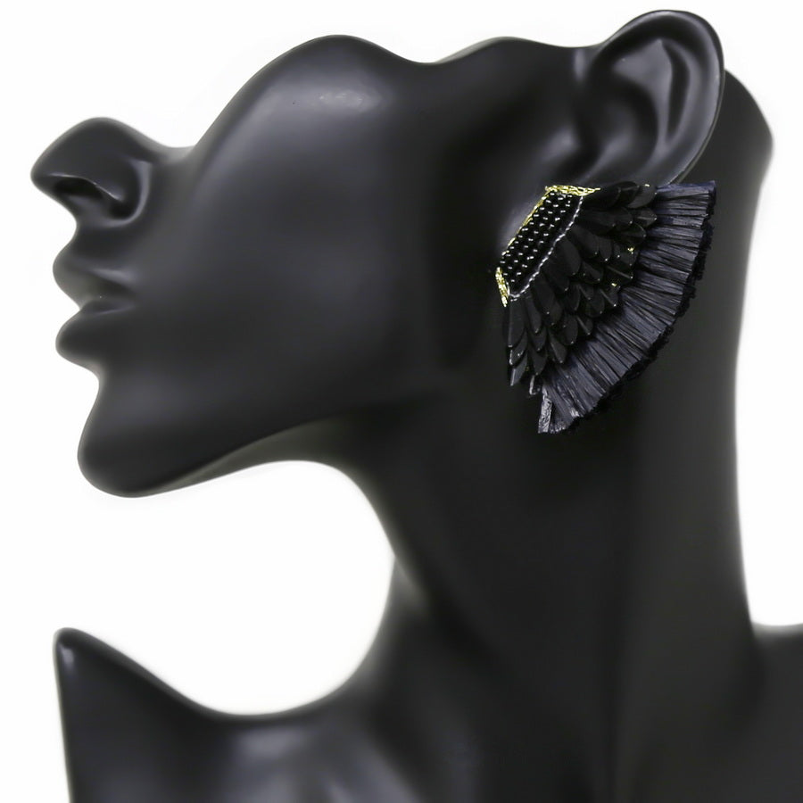 Oversize Wing Shape Raffia Fringe Statement Earrings