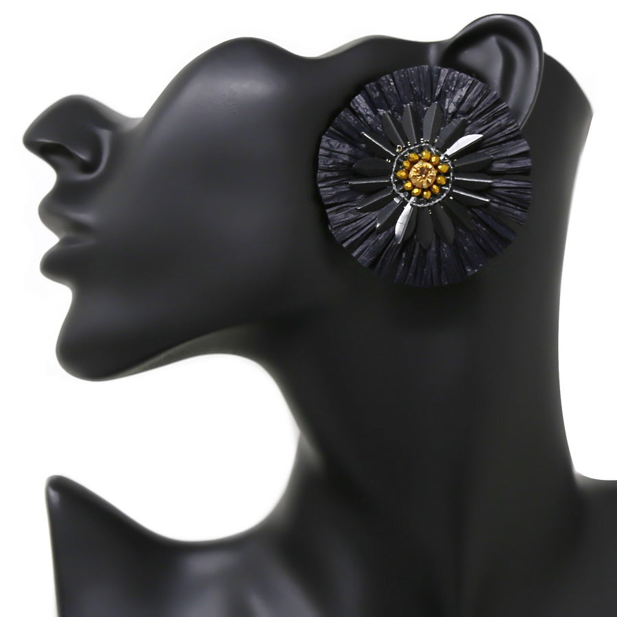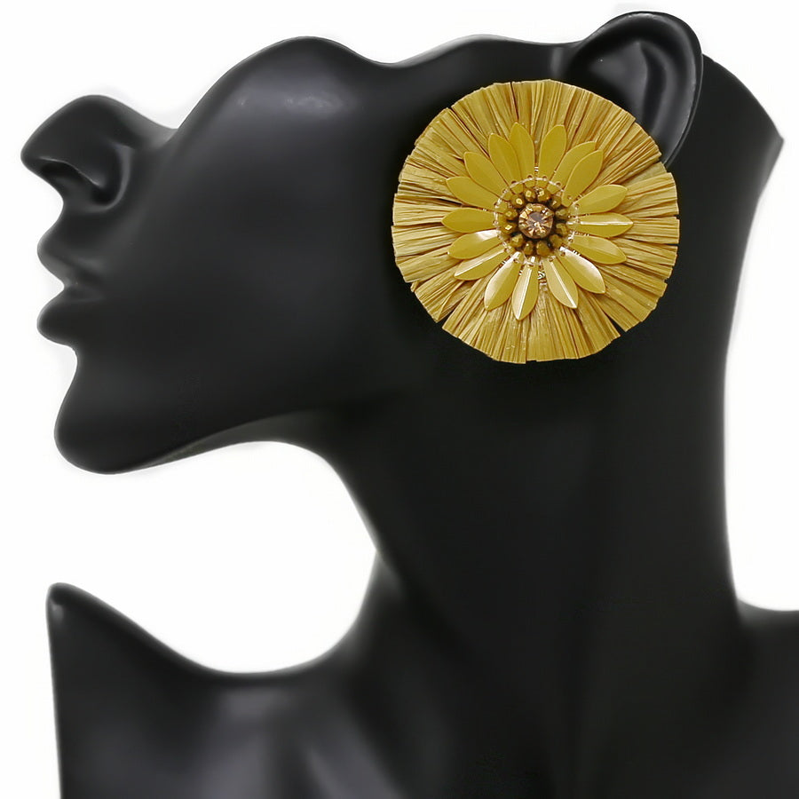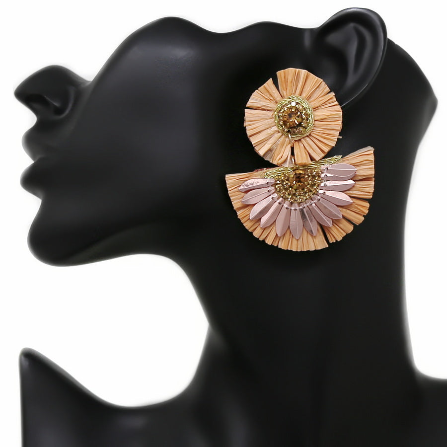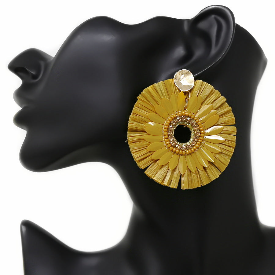 Oversize Wing Shape Raffia Fringe Statement Earrings