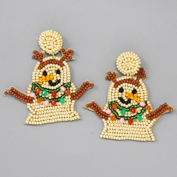 Christmas Vacay Snowman Seed Beaded Drop Earrings