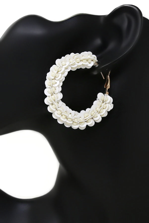 Seed Bead And Sequin Wrapped Hoop Earrings