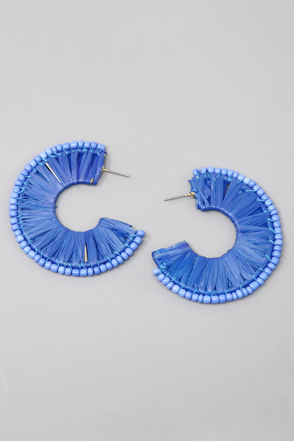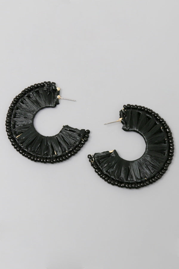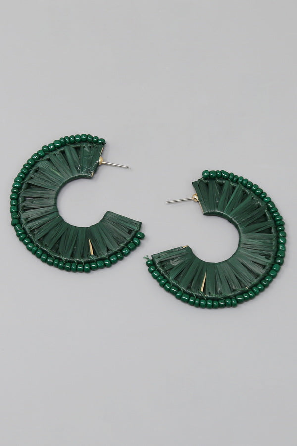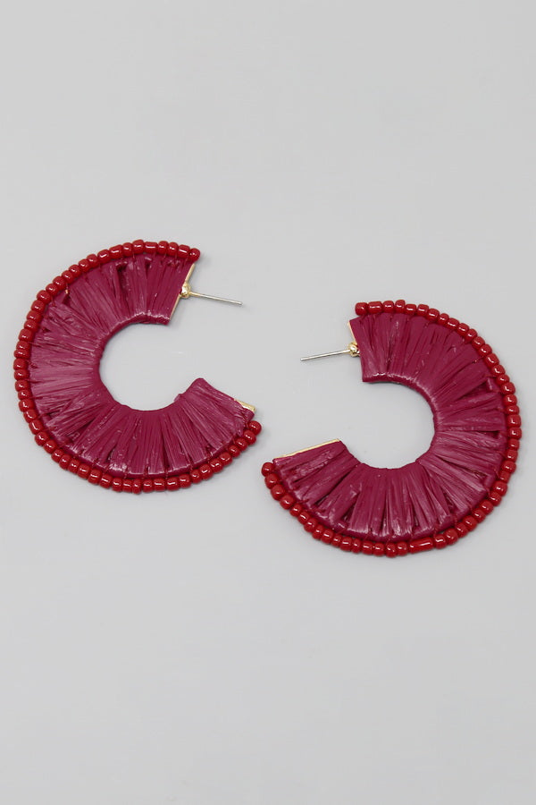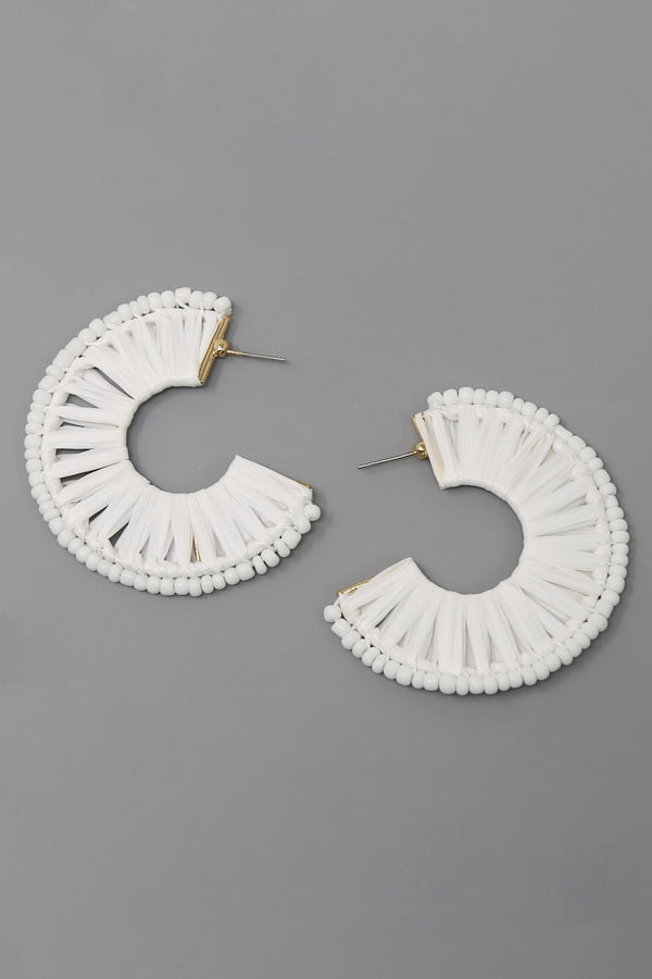 Seed Bead Trimmed Raffia Hoop Earrings