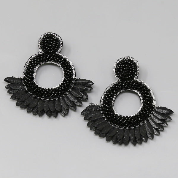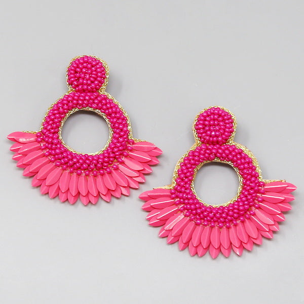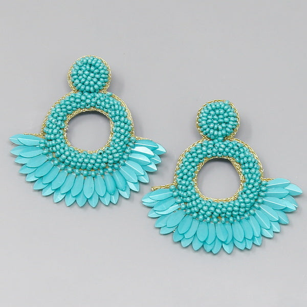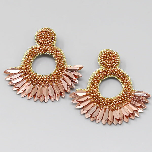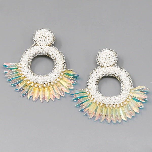 Sequin Fringe Seed Beaded Hoop Earrings