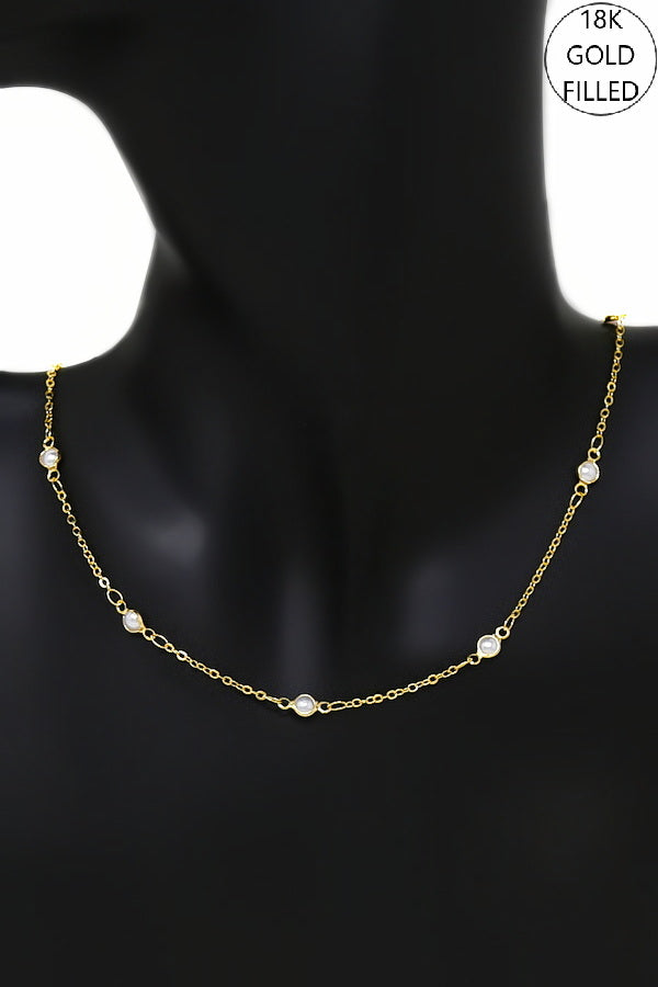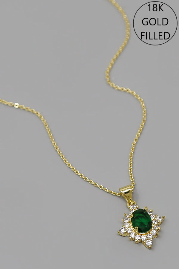 CZ Pave Oval Pendant Gold Filled Short Necklace