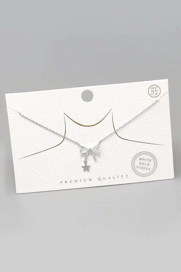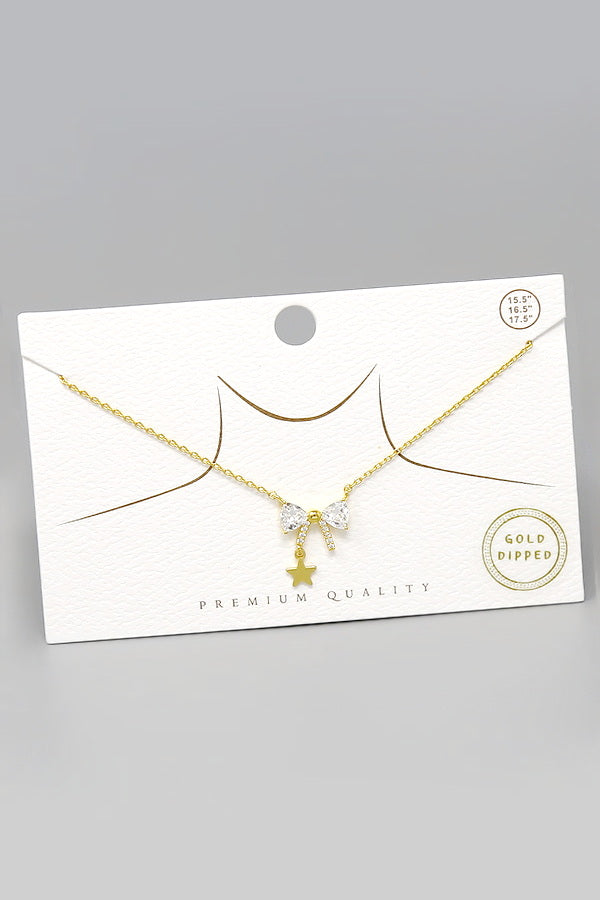 CZ Pave Bow With Star Pendant Gold Dipped Short Necklace