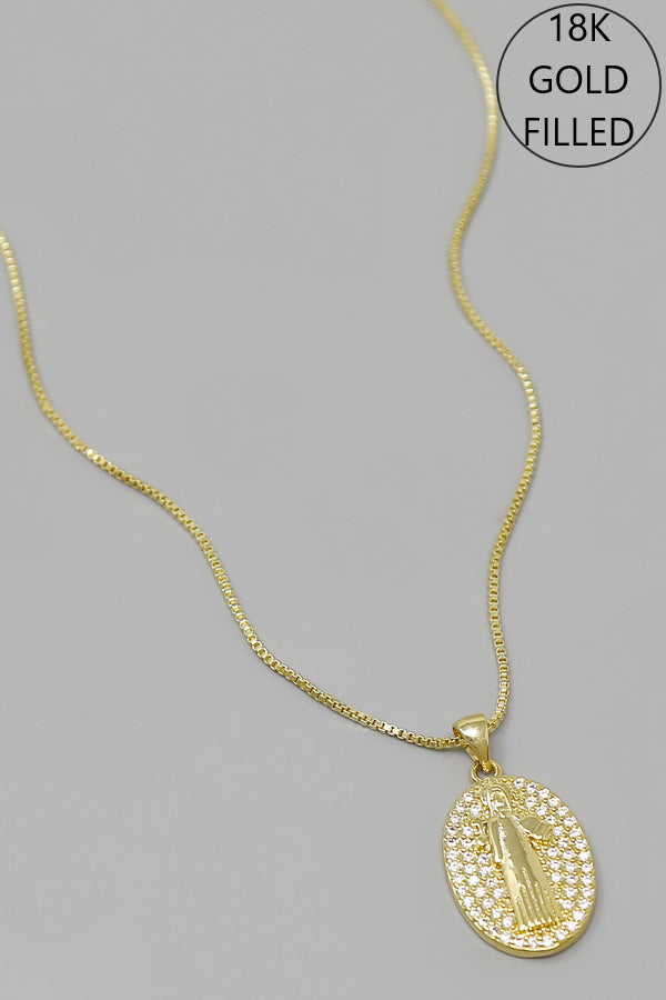 Religious Pave Heart Pendant Gold Filled Short Necklace