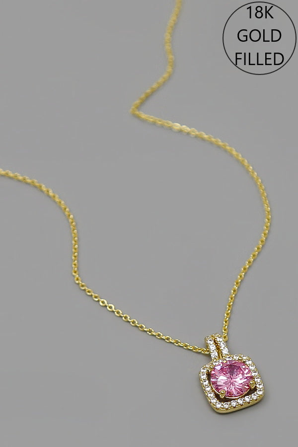 CZ Pave Square Pendant Gold Filled Short Necklace