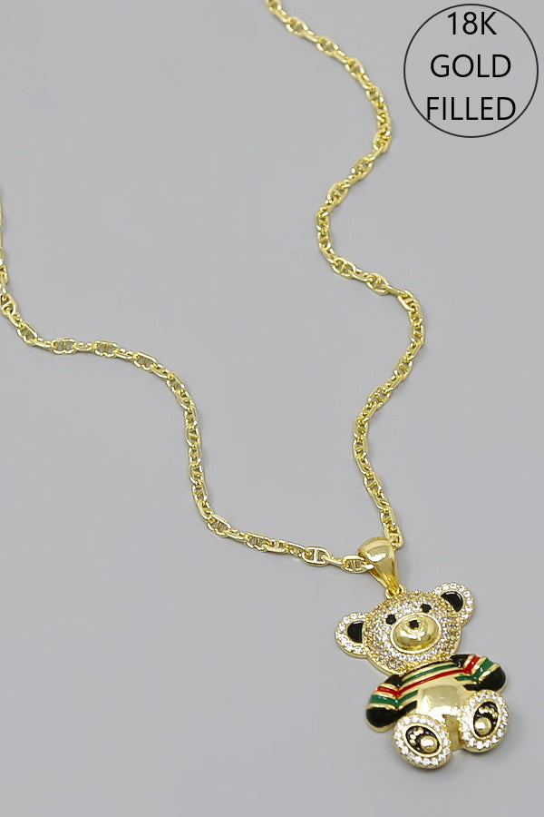Teddy Bear CZ Pave Pendant Gold Filled Short Necklace