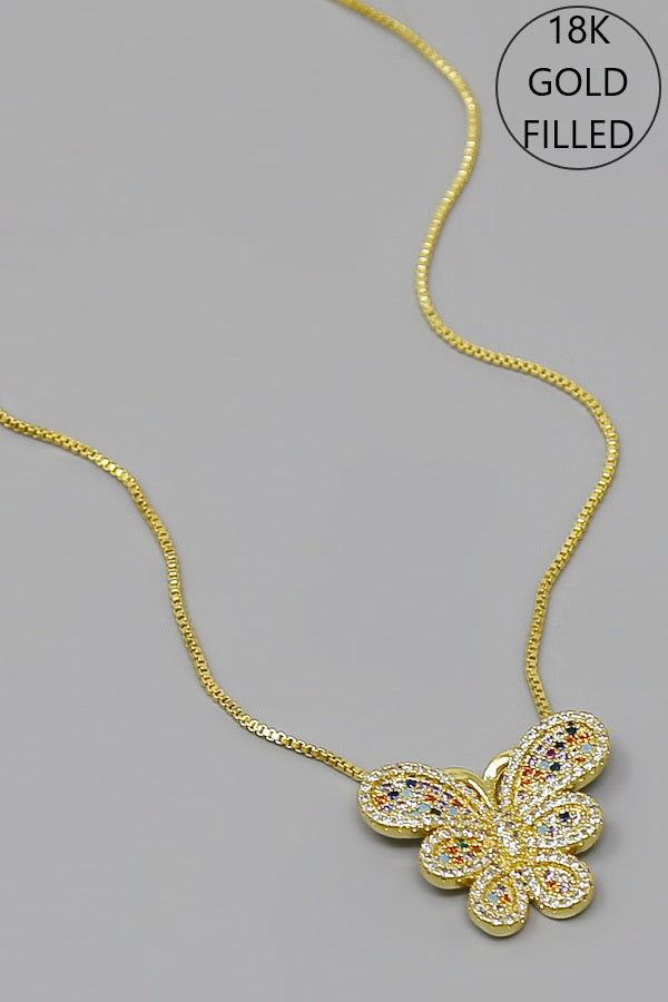 Butterfly CZ Pave Pendant Gold Filled Short Necklace