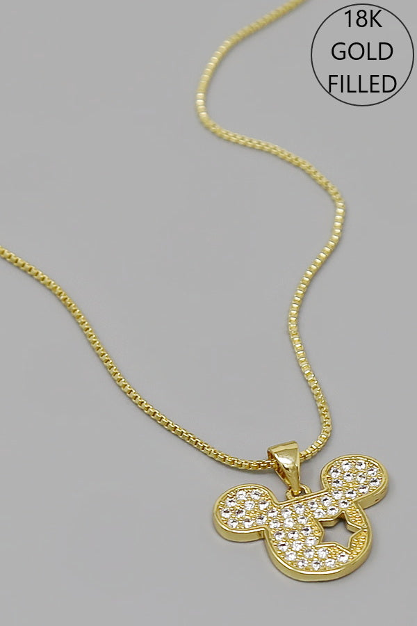 Mouse CZ Pave Pendant Gold Filled Short Necklace