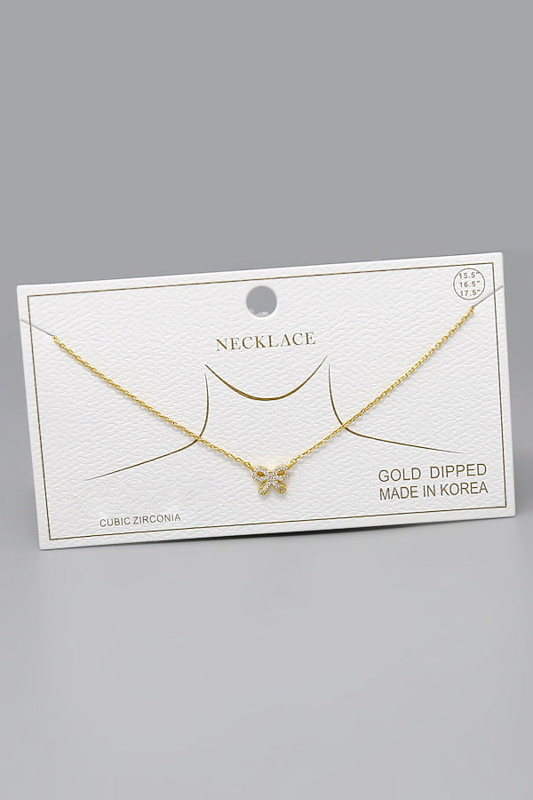 CZ Pave Bow Pendant Gold Dipped Chain Necklace